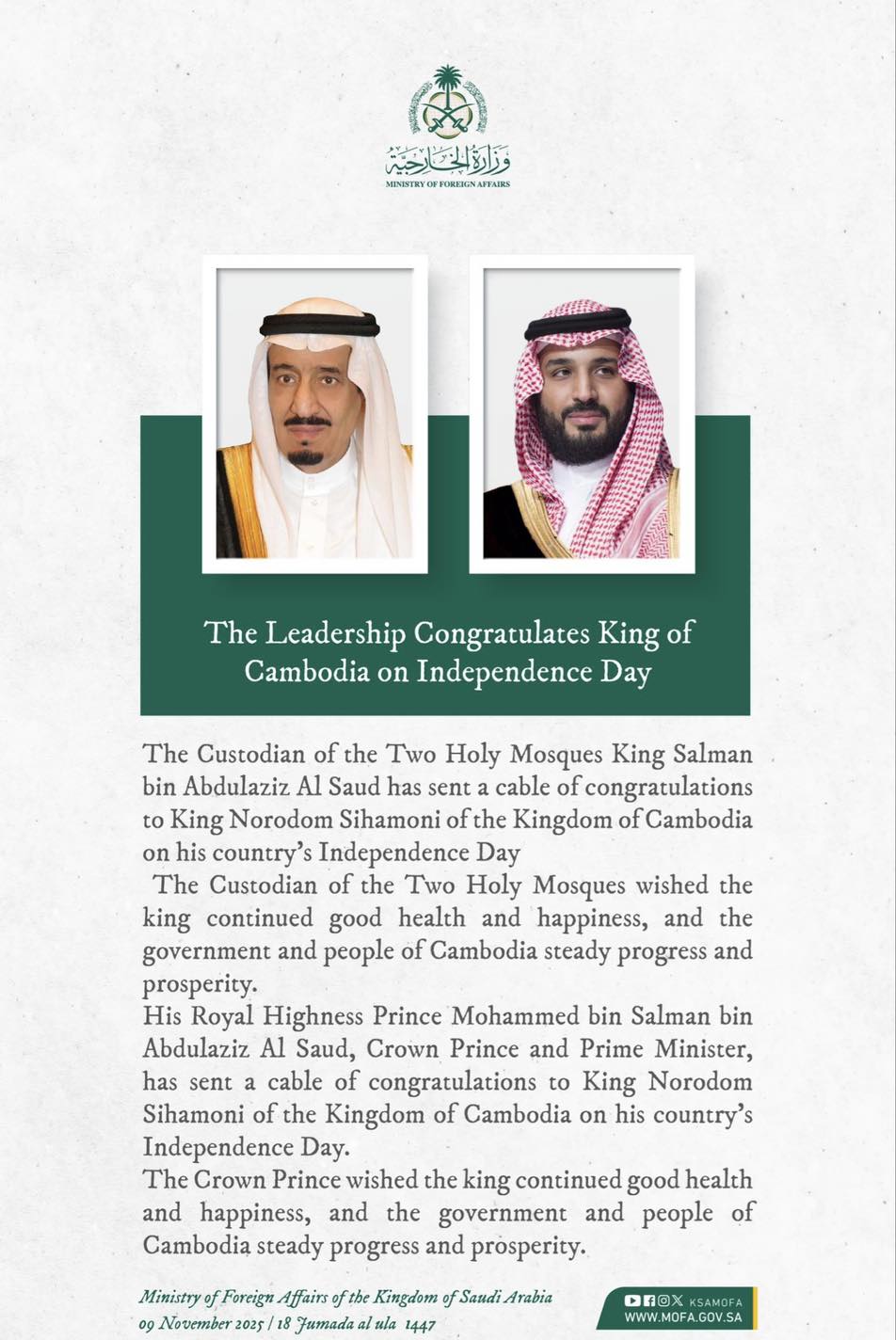 ស្ថានទូតឥណ្ឌូនេស៊ីប្រចាំនៅកម្ពុជានឹង រៀបចំកម្មវិធី«ផ្សាររាត្រីឥណ្ឌូនេស៊ី» នៅថ្ងៃទី១៥-១៦ ខែវិច្ឆិកា ឆ្នាំ២០២៥ វេលាម៉ោង 6:00-9:00 យប់ ដោយមានការដាក់បង្ហាញម្ហូបឥណ្ឌូនេស៊ី ការសម្តែងវប្បធម៌ តន្រ្តី (more…)