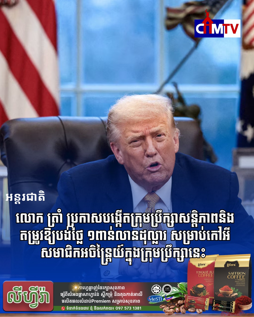 លោក ត្រាំ ប្រកាសបង្កើតក្រុមប្រឹក្សាសន្តិភាពនិង​តម្រូវឱ្យបង់ថ្លៃ ១ពាន់លានដុល្លារ សម្រាប់កៅអីសមាជិកអចិន្ត្រៃយ៍ក្នុងក្រុមប្រឹក្សា