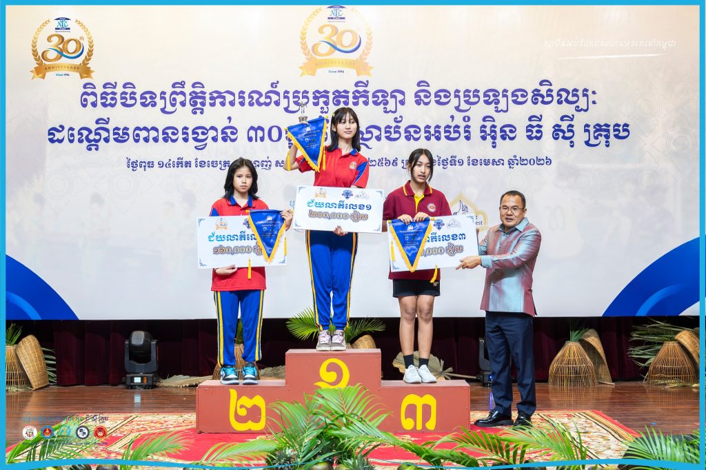 ពិធីបិទព្រឹត្តិការណ៍ប្រកួតកីឡា និងប្រឡងសិល្បៈនេះ យ៉ាងអធិកអធម ក្រោមអធិបតីភាពដ៏ខ្ពង់ខ្ពស់របស់ លោកឧកញ៉ា ជា ធីឡាយ អគ្គនាយក និងជាស្ថាបនិក នៃស្ថាប័នអប់រំ អ៊ិន ធី ស៊ី គ្រុប ព្រមទាំង លោកជំទាវ យូរ ឃីម ធីឡាយ និង លោក ឃឹម ផុន ប្រធាននាយកប្រតិបត្តិ នារសៀលថ្ងៃទី១ ខែ មេសា ឆ្នាំ២០២៦ នៅមជ្ឈមណ្ឌលសហប្រតិបត្តការណ័កម្ពុជា កូរ៉េ។